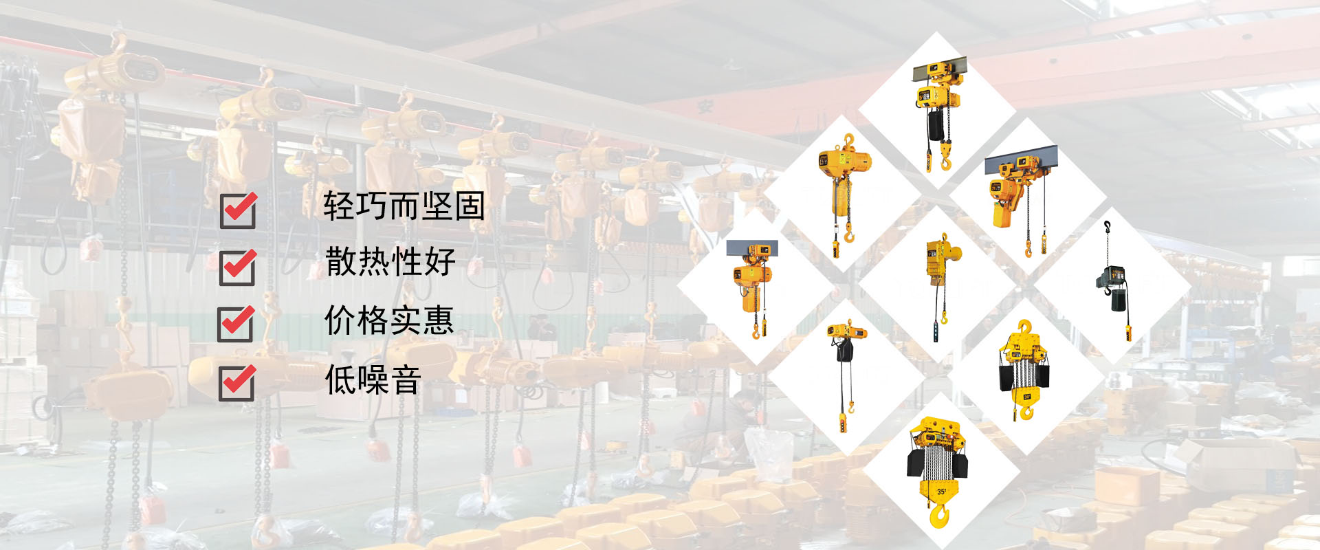 密歇爾起重機械(杭州)有限公司提供全面的起重輸送產品和服務,產品覆蓋環鏈電動葫蘆(125Kg-80T),歐式鋼絲繩葫蘆,防爆葫蘆,懸臂吊,KBK柔性起重機,歐式起重機,起重馬達,端梁,起重移動供電系統等,在國內外被廣泛的應用于生產車間,汽車,模具,機械制造,鐵路,船舶,物流搬運,現代化工廠流水線等工業及其它特殊用途。